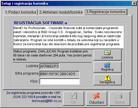 Procesom registracije DEMO verzija postaje potpuno operativna, bez vremenskih ograničenja.