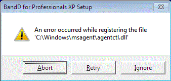 Ova poruka se na Windows 98 računarima javlja uvek i može se ignotisati, pošto na njima nije moguće korišćenje carobnjaka. Na Windows 98/NT/Me/2000 sistemima, mogu se javiti i poruke: An error occurred while registering the file .... MSCAL.OCX i An error occurred while registering the file .... urlmon.dll. U slučaju njihovog javljanja treba odabrati dugme Ignore. Ove poruke se javljaju u verzijama programa posle verzije 2.38 zbog nemogućnosti instalacije naprednih kontrola za pristup Internet-u i kalendar kontroli pod Windows 98 sistemima. Preporučena akcija za većinu korisnika: Kliknuti na taster Ignore. |